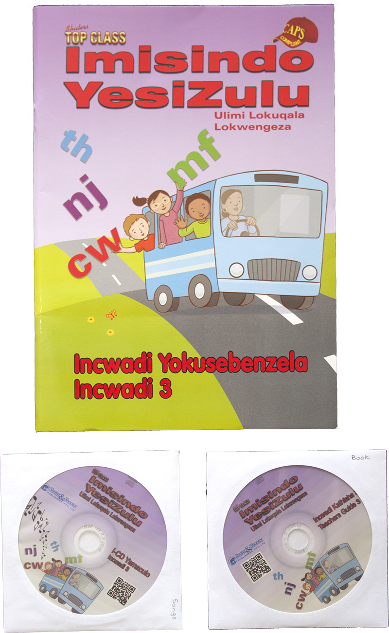 A complete 3-year course, to teach isiZulu phonics, developed for beginner, learners of the isiZulu language. User -friendly and practical, offering a graded progression through phonic sounds. The programme consists of three workbooks which are each accompanied by TWO FREE C.Ds. One C.D. has songs and poems. One C.D. is a Teacher's Guide in English and Zulu. Print the language of your choice. Buy the set of 3 workbooks to get the set of 6 C.D.s FREE. Assessments and games may be photocopied from the T.G. Words for the songs and poems appear in the Teacher Guides.